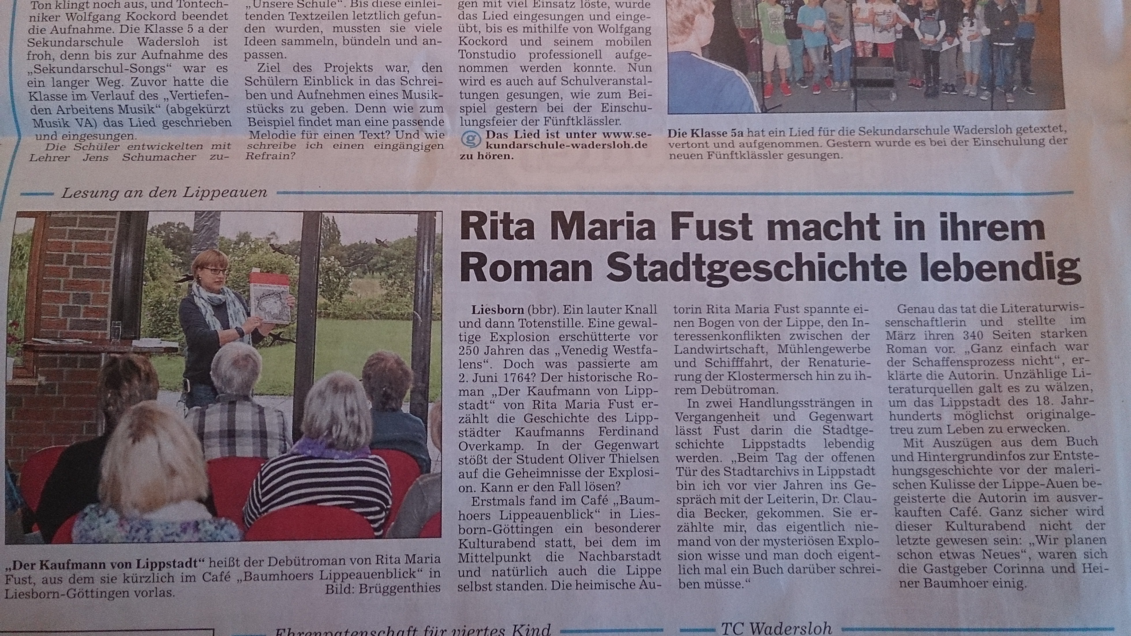 […] Die heimische Autorin Rita Maria Fust spannte einen Bogen von der Lippe, den Interessenskonflikten zwischen der Landwirtschaft, Mühlengewerbe und Schifffahrt, der Renaturierung der Klostermersch hin zu ihrem Debütroman. […]